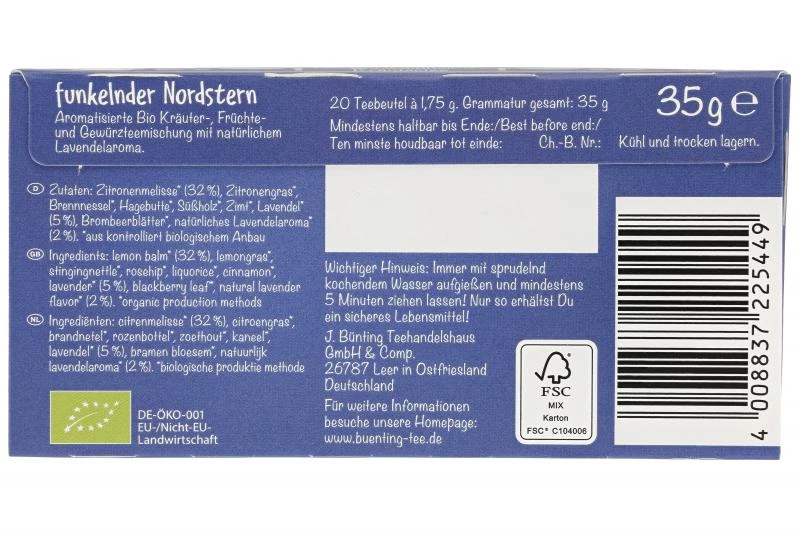 Artikelnummer: Y29TY 4502091781 Kategorien: Kaffee, Tee & Kakao, Kräutertee, Tee Schlagwort: Bünting Tee